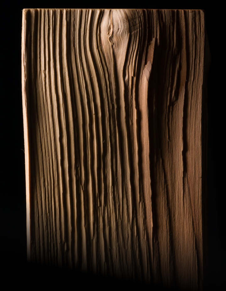 標準的な杉の倍の硬さゆえ大量生産に適さず、産地としては無名だ。しかし、だからこそ人の手が入らずに、今まで天然林として残り続けたという。一旦切り込みを入れただけで、内に秘めた杉の薫りを豊かに解き放つ姿には、誰もが満ち溢れる生命力を感じずにはいられないだろう。