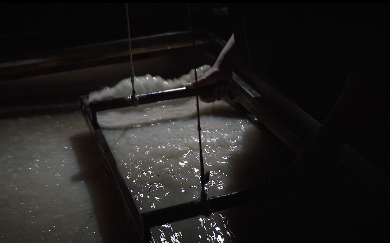 特徴のひとつである、強靭さを生む技法も独特だ。深山で受け継がれている「十字漉き」という技法は、タテに漉いて、ヨコに漉いてを幾度となく繰り返す独特のもの。まるで織る様に漉くため、「紙というよりも織物に近い」とも言われている。